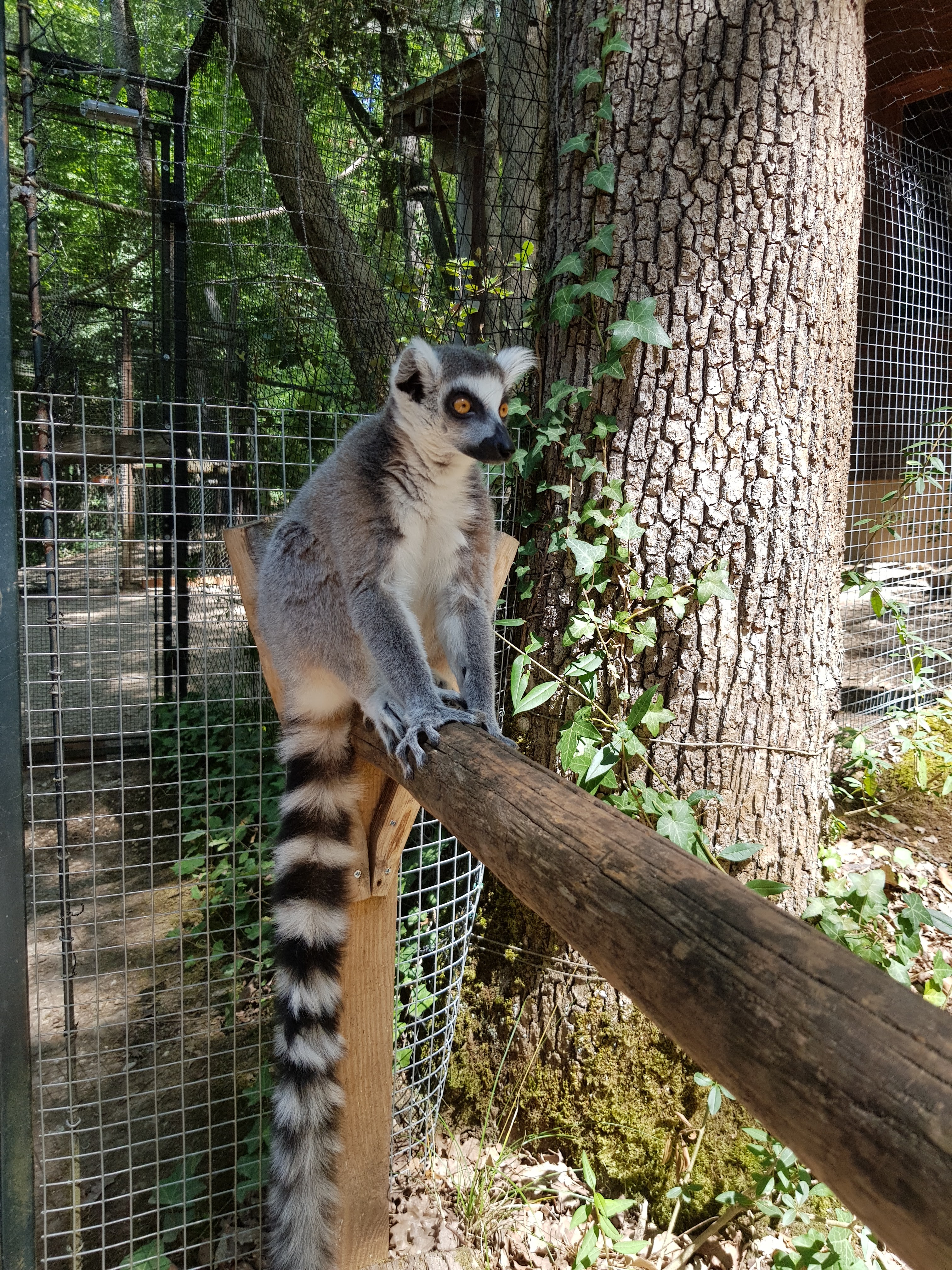 Zoo bien ombragé mais très escarpé je déconseille avec de jeunes enfants et poussettes plutôt cher pour le manque de diversité d espèces mais surtout la difficulté de voir certains animaux il faut être patient les gros plus l argent des entrées est en partie reversé à des associations de défense de la cause animale c est nous qui choisissons où va l argent,les animaux ont plutôt de l'espace,une mention particulière pour la découverte des lémuriens en totale liberté avec nous super 👍